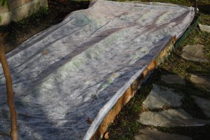 We rarely have snow, so even flurries are exciting. The temperature never fell below freezing, but tomorrow it is supposed to dip into the upper 20’s. SO. I ran outside and put out my frost covers over my spinach, kale, swiss chard, lettuces, arugula , watercress (which is growing amazingly well) radishes, parsley and beets which were barely visible in the ground.